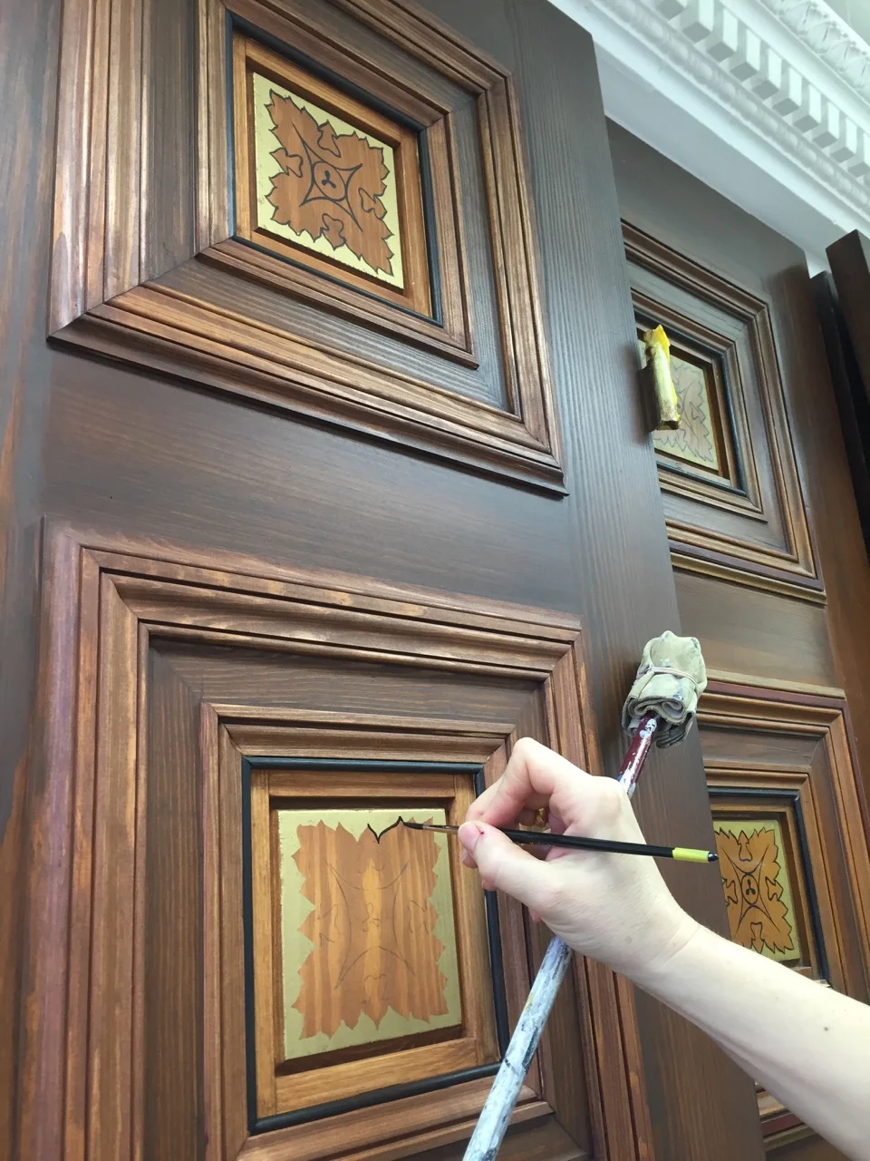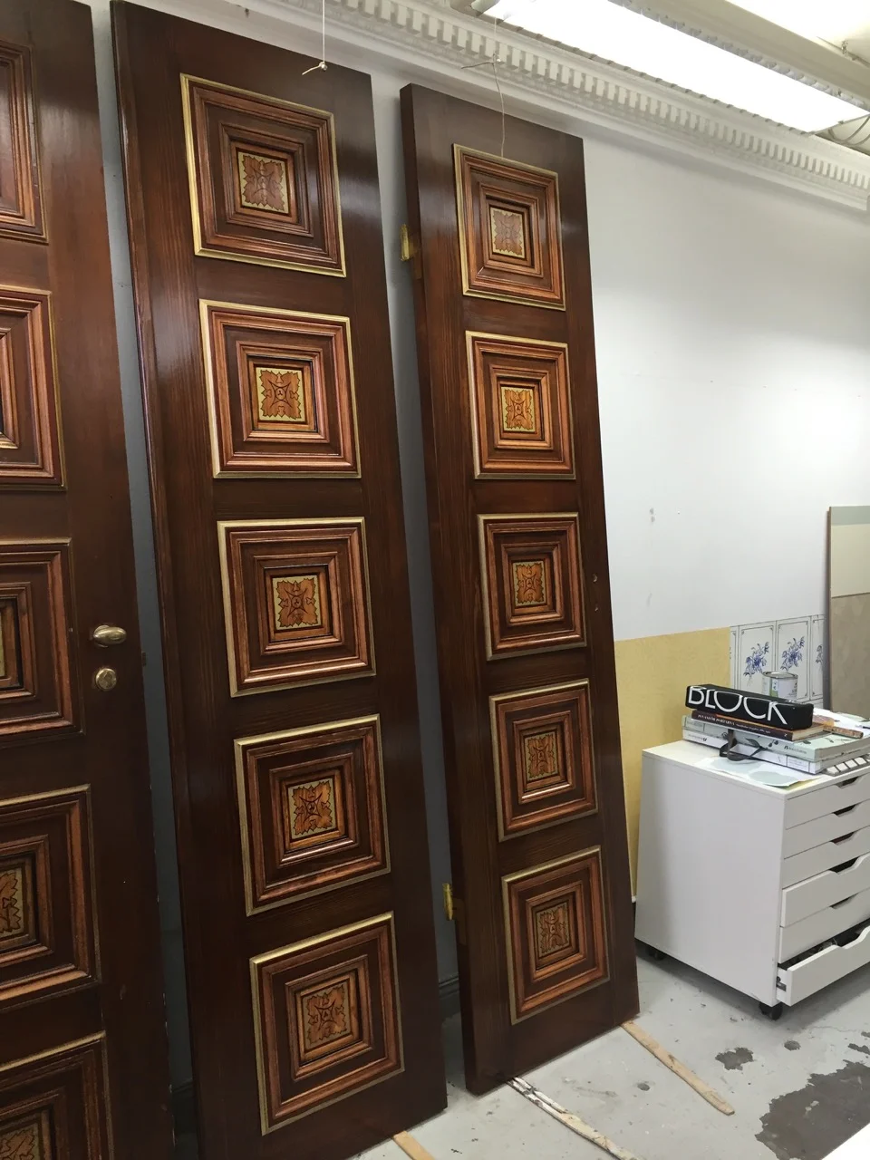 Dessa dörrar är kopior och målade efter de originaldörrar från slutet av 1800-talet i en paradvåning på Strandvägen. Detta jobb är utfört åt Båge Bygg som har totalrenoverat våningen i fråga.