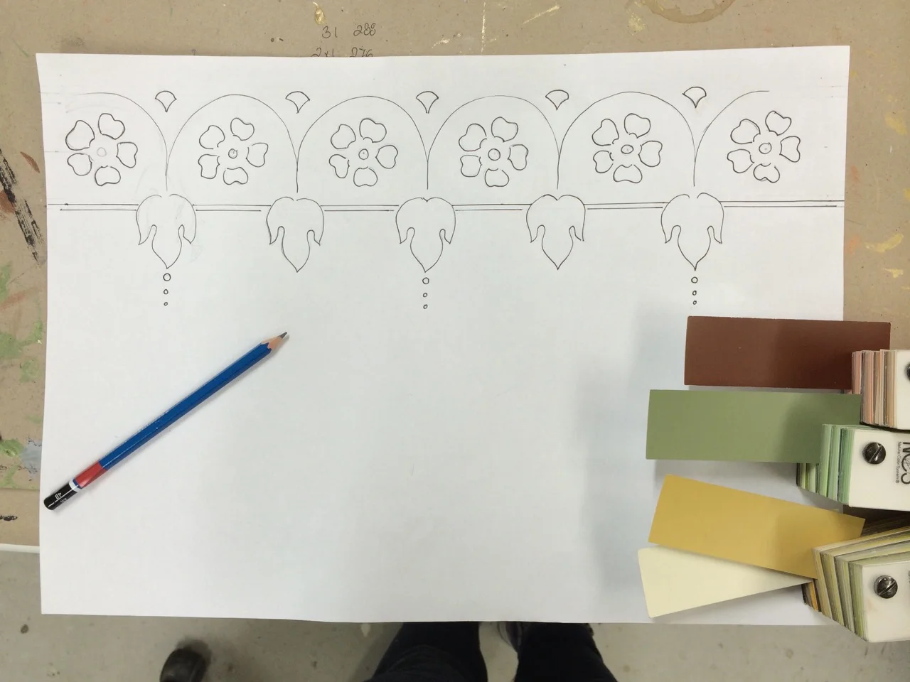 I detta rum med anor från 1600-talet har jag tillsammans med Sara Kebbon målat väggfält i salongen och en bård i köket.